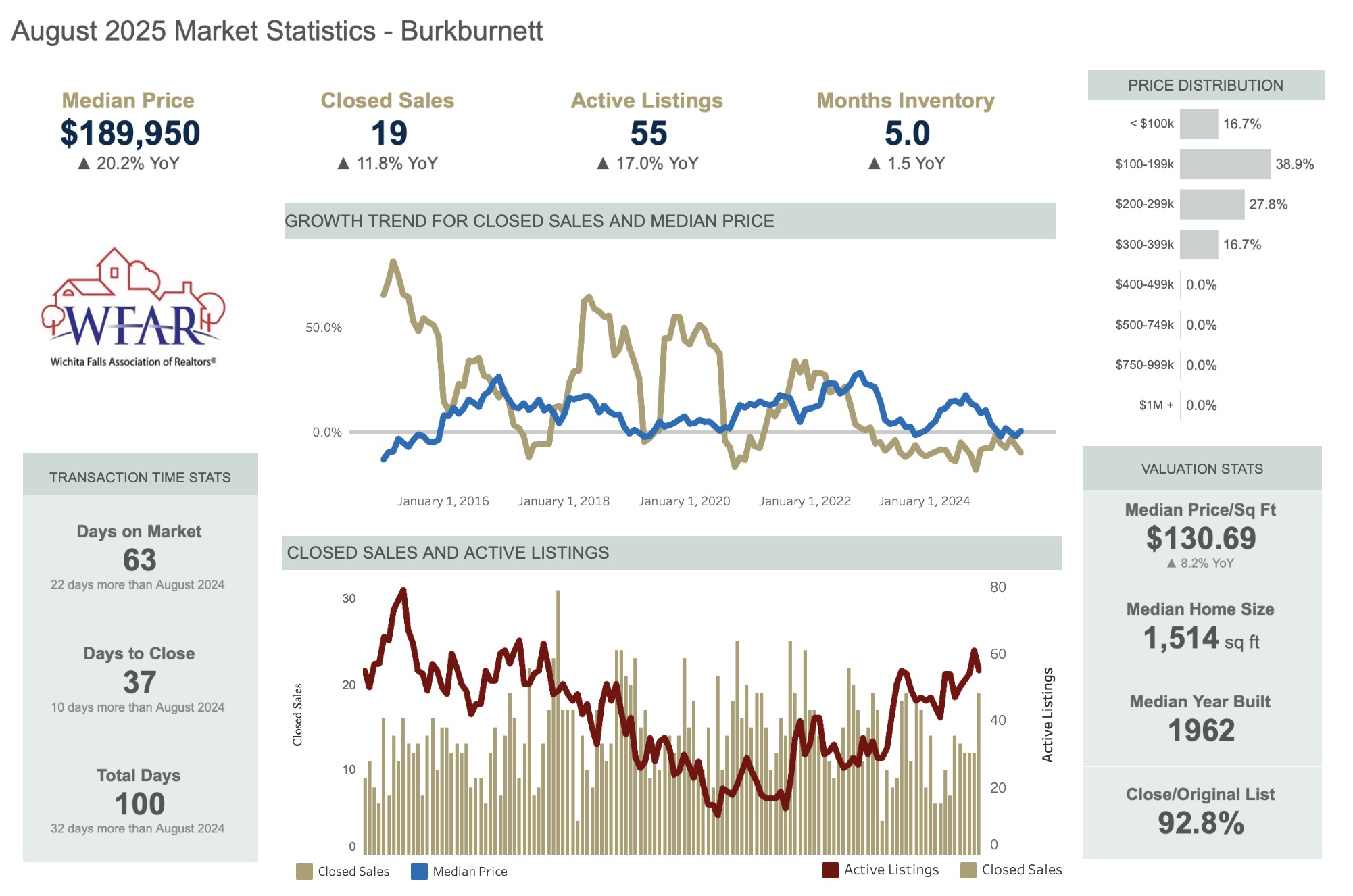 Graph of housing market in Burkburnett TX for August 2025