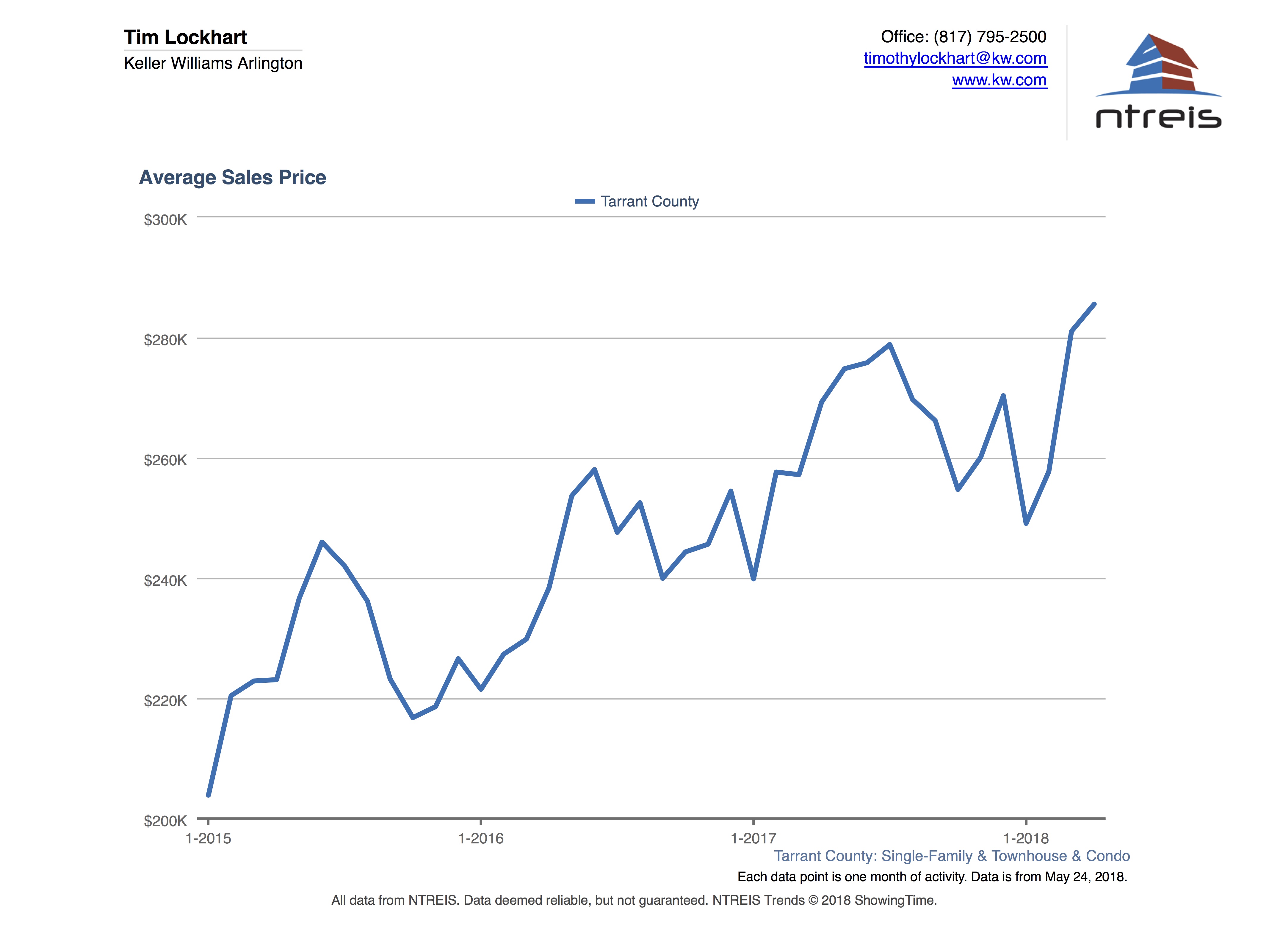 Graph of Average sales price for homes for sale in Tarrant County